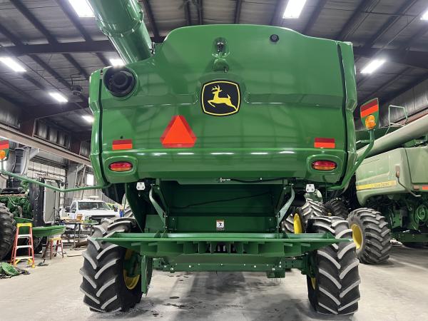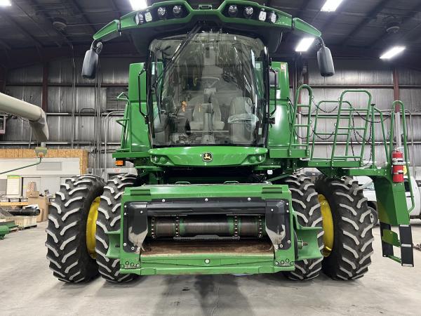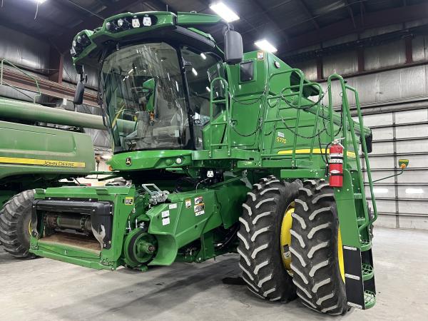 nice local S770 combine premium cab, technology, visibility, 2 wd, 520/85R42 duals, 26' unloading auger, chopper w/manual tail board, power fold bin ext w/add on ext, round bar concave, feed accelerator slow speed kit, 600/70R28 rear tires, pro drive transmission, command touch 5 speed feederhouse w/for aft tilt, clean grain/fan protector, Before driving to see this item, please call or email to confirm availability.
