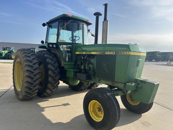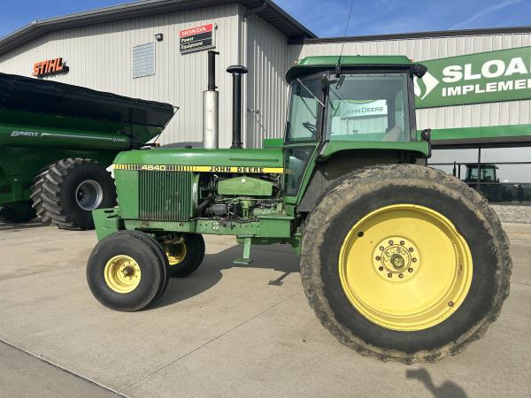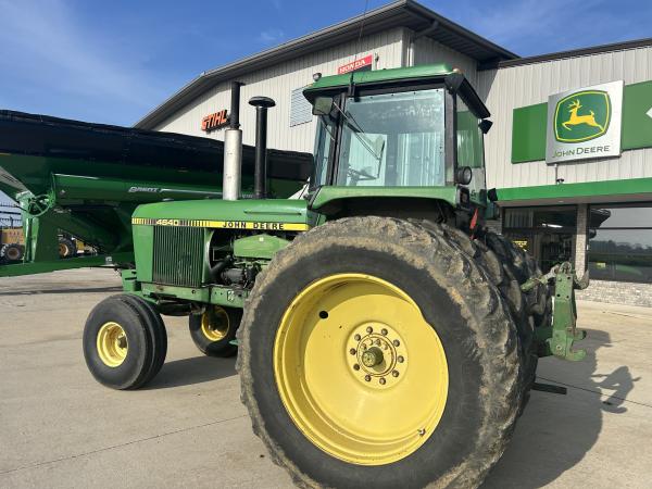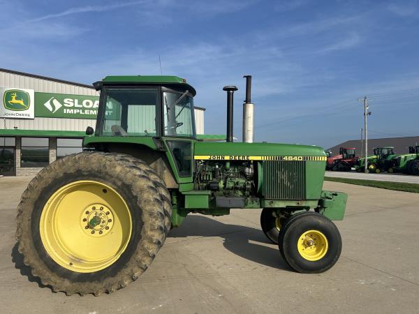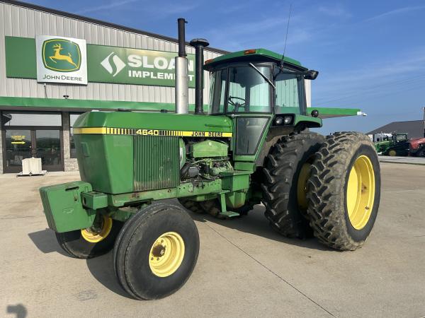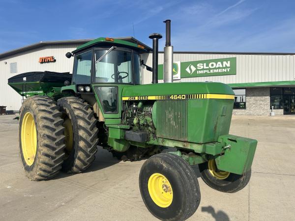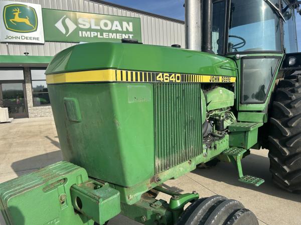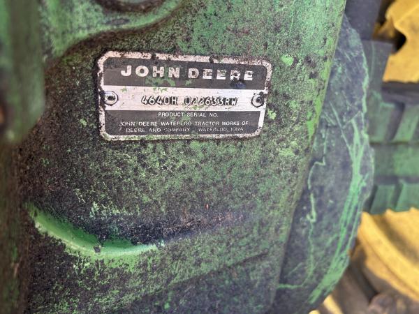 1981 JD 4640 TRACTOR, QUAD RANGE TRANSMISSION, 11.00X16 (70%), 18.4X42 AXLE DUALS, MISMATCH REAR TIRE BRANDS, LARGE 1000 PTO, CAST CAT 3 QUICK HITCH, 2 SCV BUT ALSO INCLUDES AN ELECTRIC VALVE TO PROVIDE A 3RD OUTLET, 6 FRONT WEIGHTS, RADIO DOES NOT WORK, SELL AS IS...Before driving to see this item, please call or email to confirm availability.