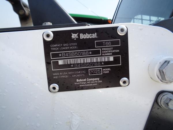 '25 BOBCAT T66 COMPACT TRACK LOADER, CAB W/ HEAT & A/C, RADIO W/ BLUETOOTH, AIR RIDE SEAT W/ HEAT, EH SWITCHABLE CONTROLS, H-PATTERN, ISO, STANDARD FLOW HYDRAULICS, POWER QT, REVERSING FAN, NARROW 12.5" ZIG ZAG TRACKS, RIDE CONTROL, SELF LEVEL, 2-SPD, KEYLESS START, 7-PIN ELECTRICAL HOOKUP, REAR VIEW CAMERA, LED LIGHTS, AUTO THROTTLE, 72" TOOTH BUCKET & 66" SMOTH BUCKET Before driving to see this item, please call or email to confirm availability.