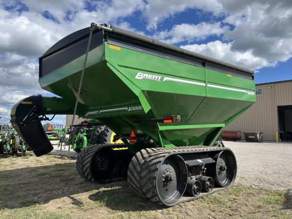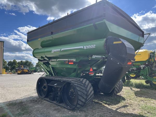 '18 Brent V1000 grain cart, 1000 bushel, green, 20" corner auger, 36x131" hyd adjustable tracks, 410 scale head, 5 point scale system, factory installed tarp, 4 seasons on cart, nice shape Before driving to see this item, please call or email to confirm availability.