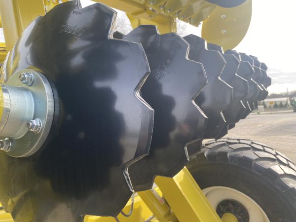 NEW PRO TILL 30' HIGH SPEED DISK - 9 BAR CAGE ROLLER - 20" BLADES NOTCHED FRONT SMOOTH REAR, Before driving to see this item, please call or email to confirm availability.