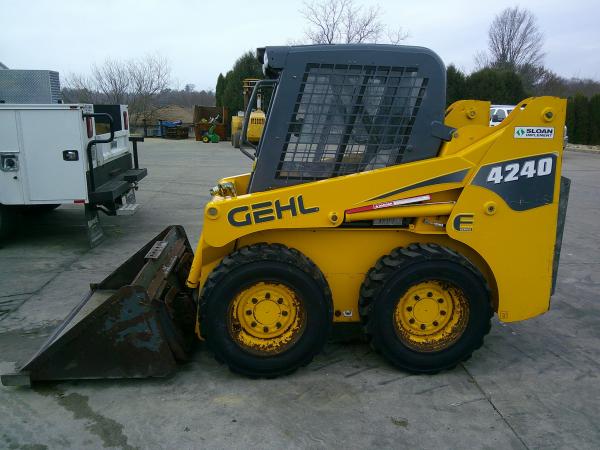 2006 GEHL 4240E SKID STEER, 1350 RATED LIFT, 46HP YANMAR ENGINE, 1 SP 7MPH, 10.00x16.5 TIRES, 54" BUCKET, OPEN STATION, SIDE AND REAR WINDOWS, HAS HEAT. Before driving to see this item, please call or email to confirm availability.
