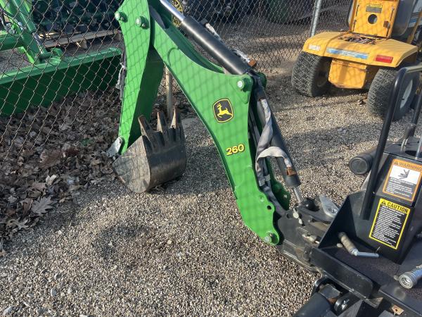 2014 JOHN DEERE 1025R TRACTOR LOADER BACKHOE, 60D AUTO CONNECT MOWER DECK, R4 INDUSTRIAL TIRES, 2 FUNCTION JOYSTICK AND H120 FRONT LOADER WITH 51" FRONT BUCKET, POWER STEERING, REAR 540 PTO, Before driving to see this item, please call or email to confirm availability.
