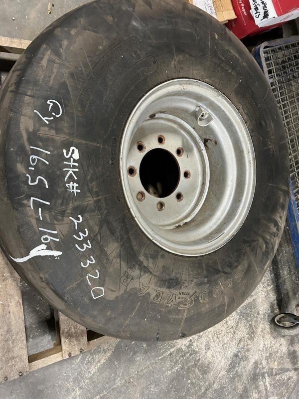 USED GY 16.5L-16.1 FI T&W LOAD RANGE E -- MOUNTED ON GREY 8 BOLT WHEEL - LOC E RACK - Before driving to see this item, please call or email to confirm availability.