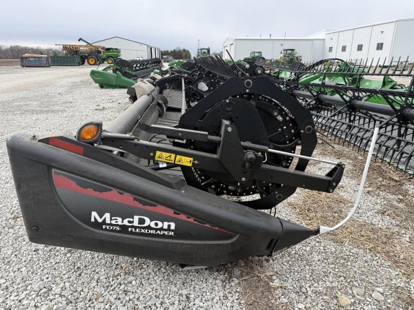 2013 MACDON FD75, 40' FLEX DRAPER, SINGLE DRIVE, REEL FLIP OVER, CASE IH HOOK UP (CAME OFF 9240 COMBINE), SPLIT REEL, NICE DRAPER. Before driving to see this item, please call or email to confirm availability.