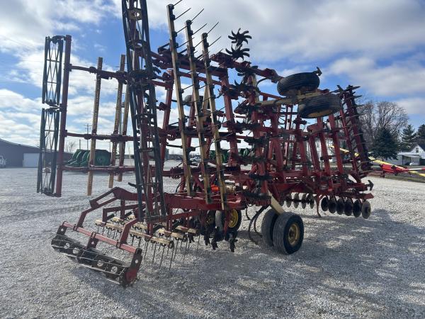 24' KRAUSE LANDSTAR FINISHER...HYD. ADJUST FRONT DISKS...9" SPACING ON DISKS...SPRING SHANKS ON FRONT RANK FOLLOWED BY K-TINE SHANKS...9" SWEEPS...WALKING TANDEMS...LEVELING STAR WHEELS...3 BAR COIL TINE W/FLAT BAR ROLLING BASKET...DECENT SHAPE FOR AGE...