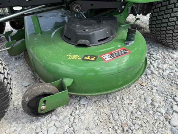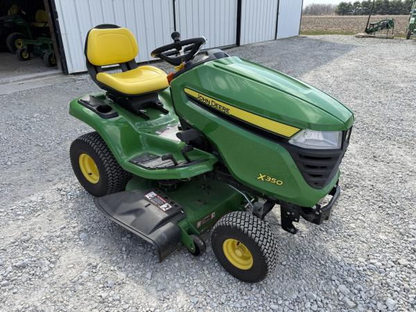 2024 John Deere X350, 42" Deck, 21.5 Horsepower, Kawasaki Engine, Foot Deck Lift, Manual Steering, Factory Warranty Until Mar 22, 2028 or 300 Hours. Before driving to see this item, please call or email to confirm availability.