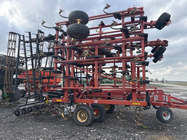 2009 Krause 5635 field cultivator, 48' work width, 5-section, 6" sweeps, 3-bar spike harrow with rolling basket, gauge wheels. Before driving to see this item, please call or email to confirm availability.
