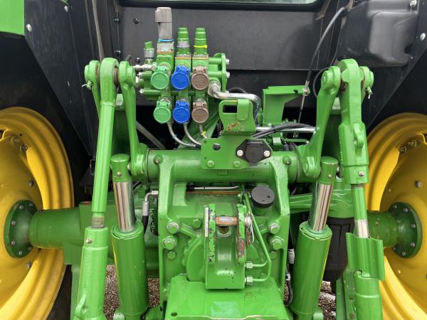 2021 JD 6135E CAB TRACTOR, 135 ENGINE HP, 114 PTO hp, Std Cab, 24F/12R w/ LH Reverser, wet clutch, air seat, 3 rear SCV, 18.4X38 rear tires, MFWD, 380/24 Fronts, loader ready: hood guard, frames, 2 function joystick for H310 loader, PRICE INCLUDES JOHN DEERE H310 LOADER WITH 85" BUCKET, BUDDY SEAT. EXTENDED POWERGARD ENGINE AND POWERTRAIN WARRANTY UNTIL 1500 HRS OR July 2027.