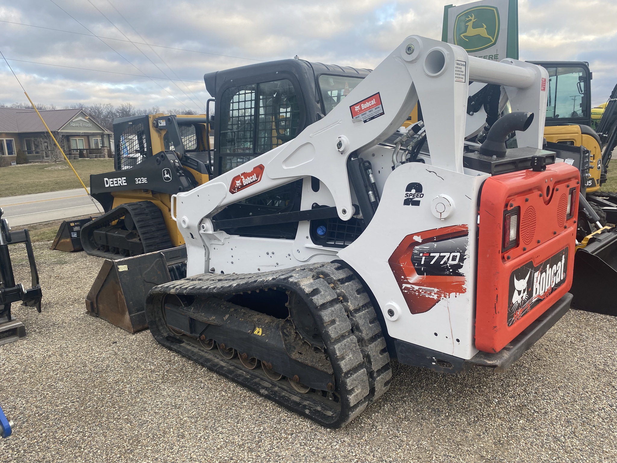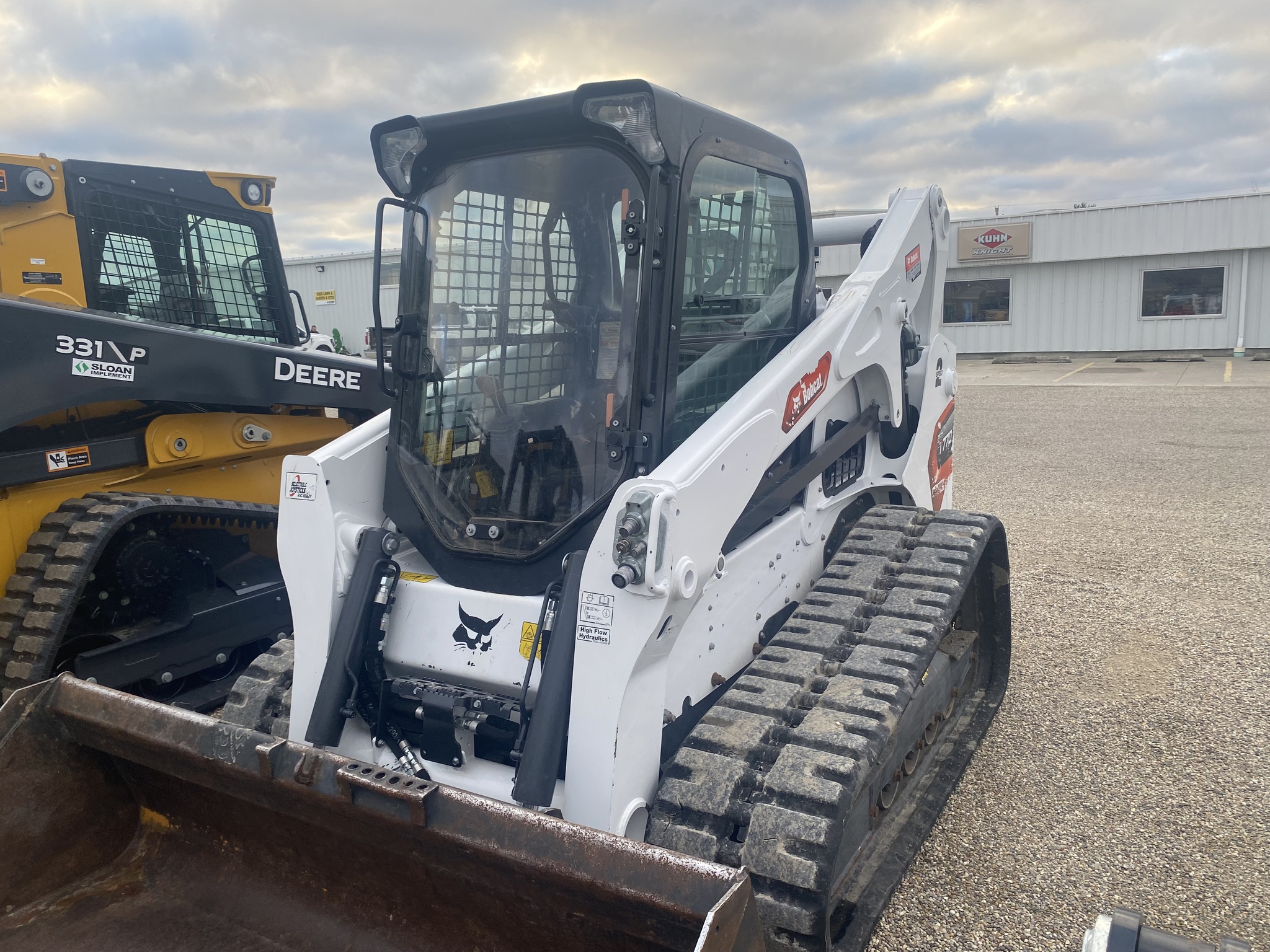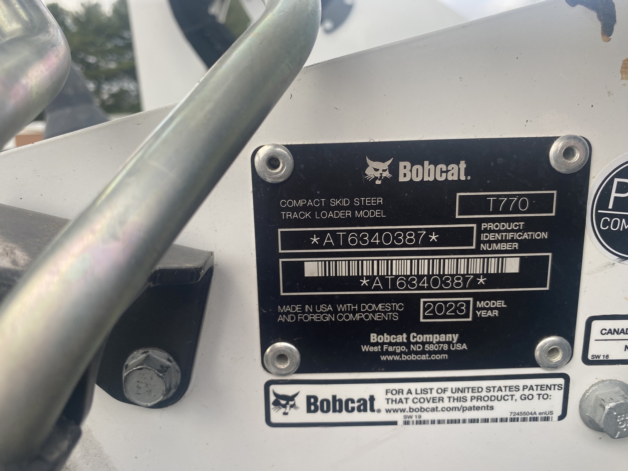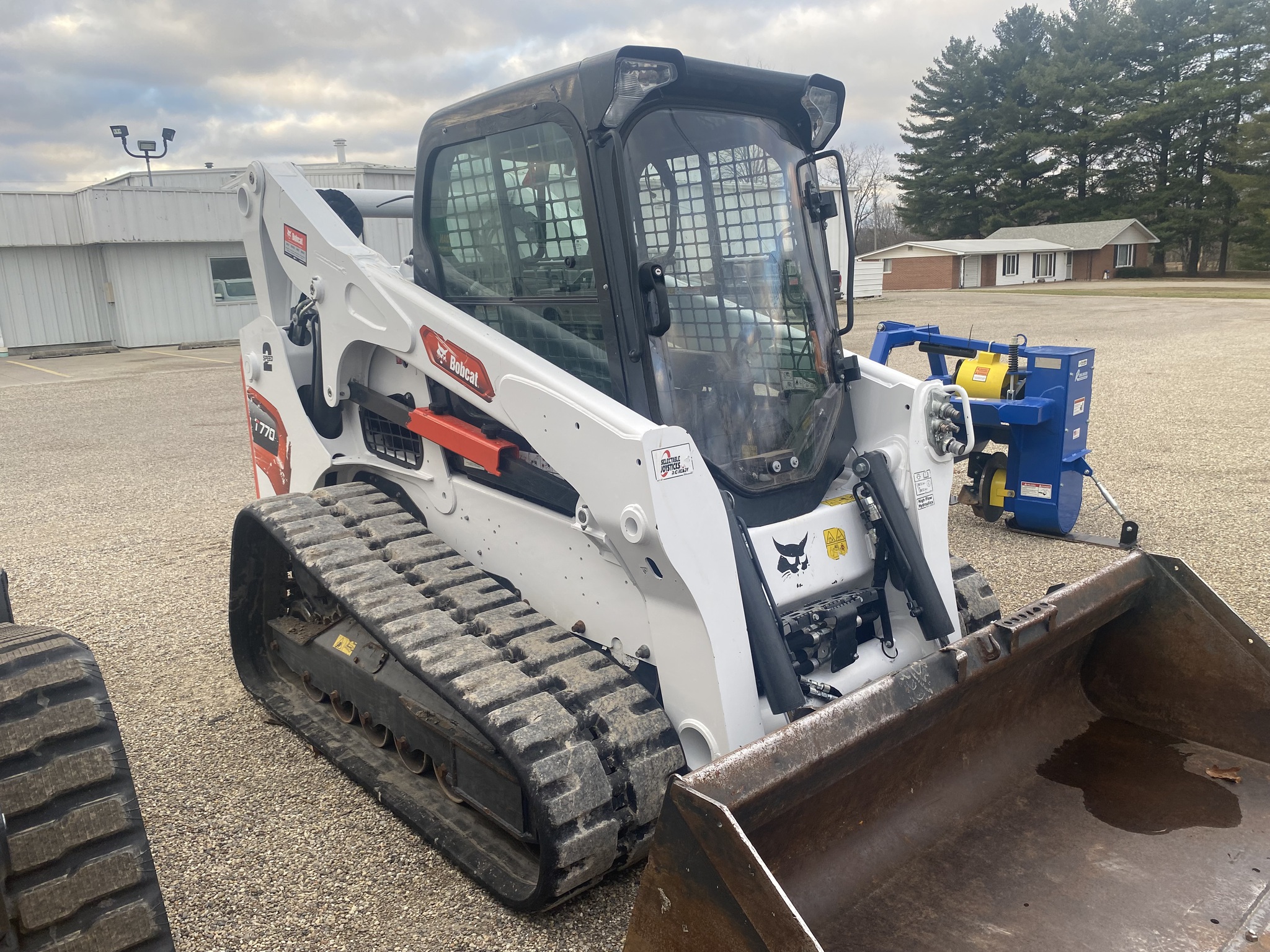 2023 Bobcat T770, Cab with Heat/AC, Selectable Joysticks, Automatic Ride Control, 2 Speed, Hi Flow, Hyd Quick Tach, 18" Staggered C Block Tracks with Roller Suspension, 79" Smooth Edge Bucket, Severe Duty Door, Rear Camera Cab Cam System, Bobcat Extended Warranty till 2028. Also includes Standard Duty Door