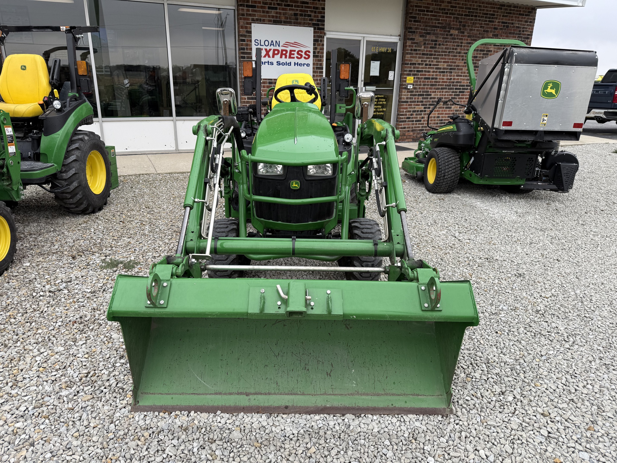 2018 John Deere 1025R, 120R Loader, 260B Backhoe, Hydrostat Transmission, 25 Horsepower, Yanmar Diesel Engine, Deluxe Seat w/ Armrests, Work Lights, Rear Facing Work Light, Boarding Step, Rear View Mirrors, Multi-Point Dual Mid-SCV Couplers, R-4 Tires, Folding ROPS.