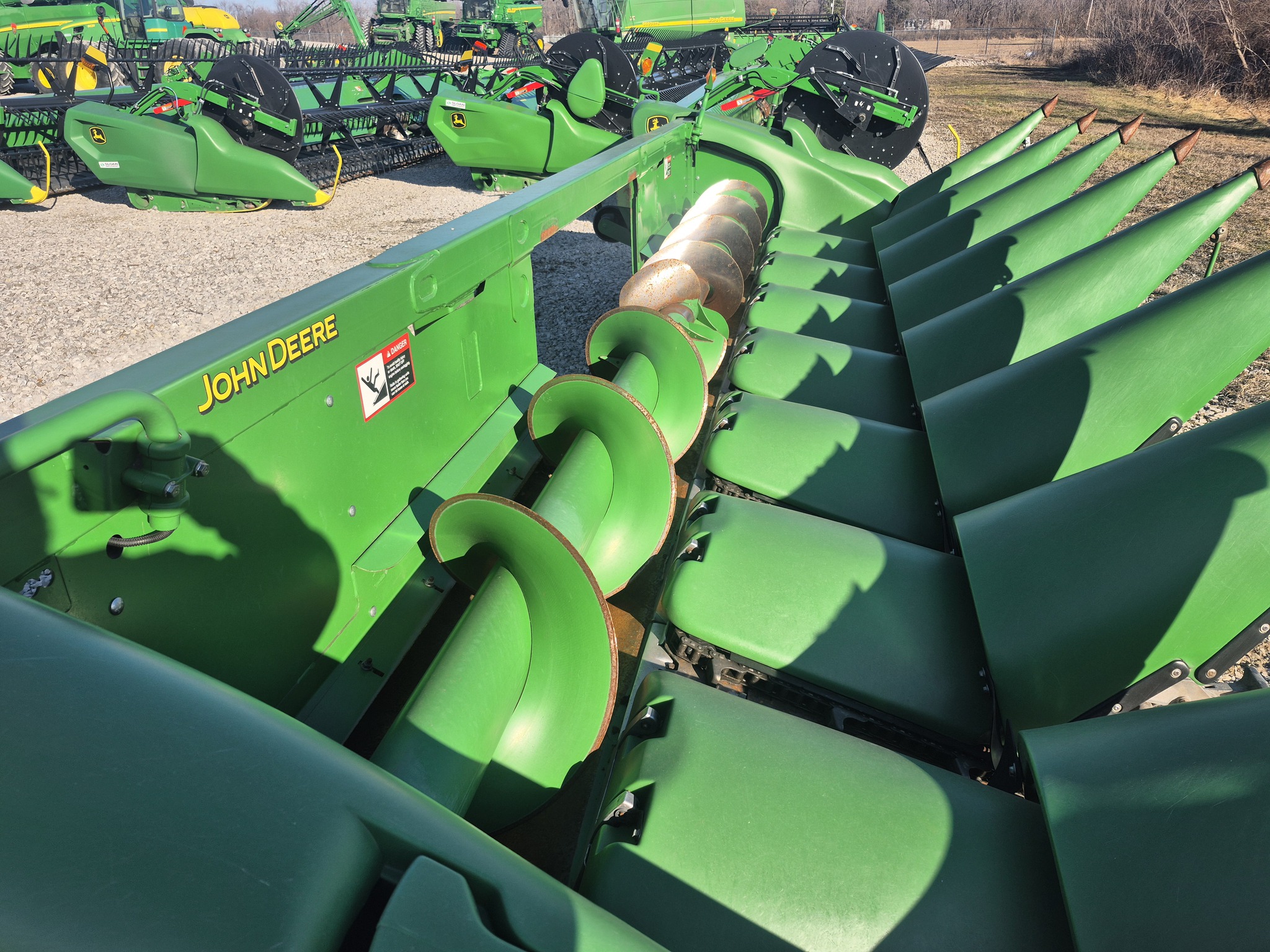 2013 JD 608C non chopping corn head, opposed rolls, hydraulic deck plates, AHC, single point hook up, installing 700 series corn head kit includes all new chains, sprockets and guides, Before driving to see this item, please call or email to confirm availability.