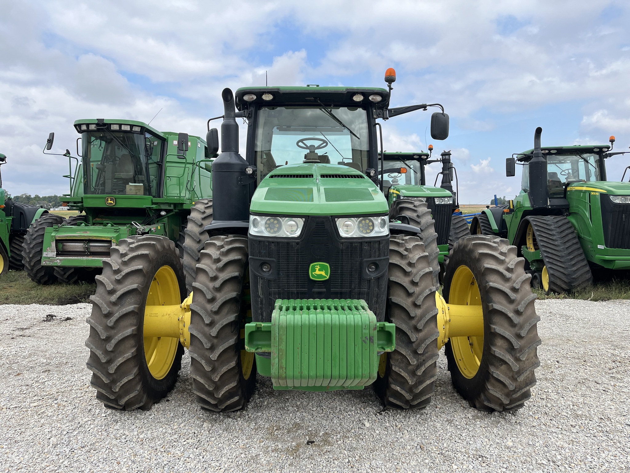 '14 JD 8370R, IVT trans, gen 4 AM 4.0, machine sync radio, ILS, cat 4 drawbar, 5 SCV's, 85 GPM pump, front fenders, prem cab, 380/82R38 fronts, 480/80R50 rears, 14 front weights, 1500# rear weights, Before driving to see this item, please call or email to confirm availability -