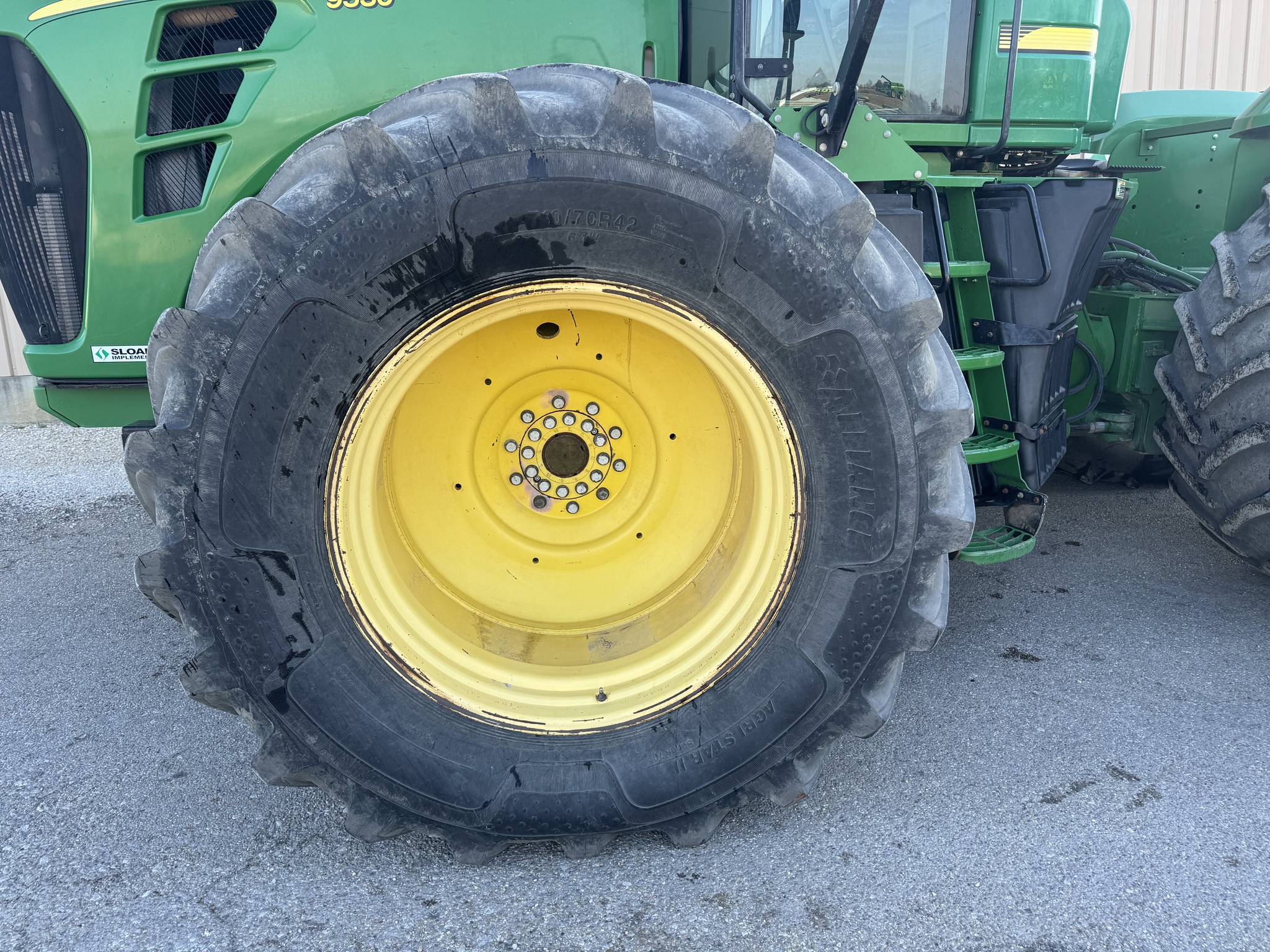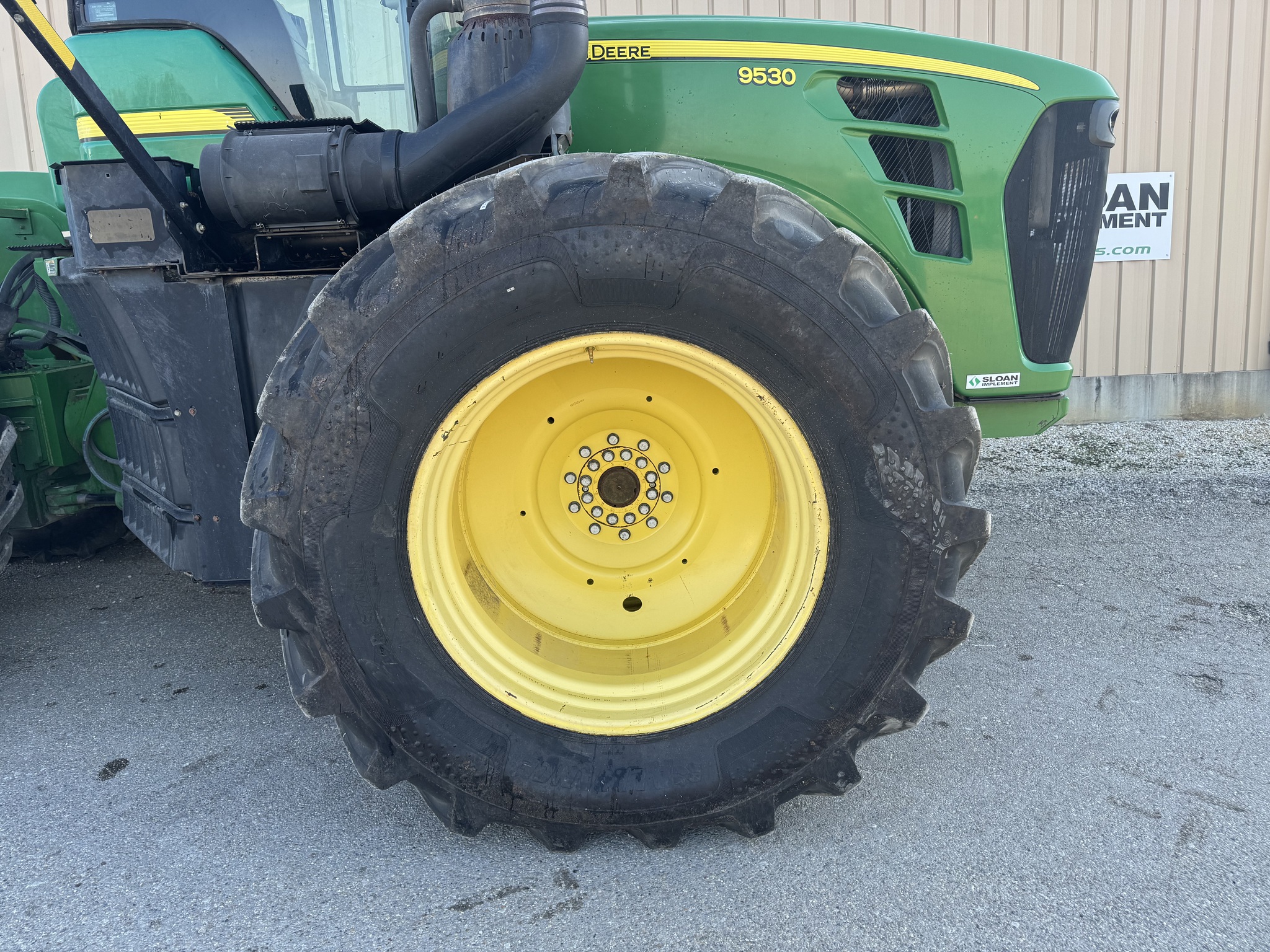 2009 9530, 1400 lbs inner rear wheel weights, 710/70/r42 tires, rear outside tires BKT 80% inner tires 30-40%, front left duals Alliance 80%, Front right duals NEW, 4 scv, buddy seat, green star ready, rear working lights. Before driving to see this item, please call or email to confirm availability. -