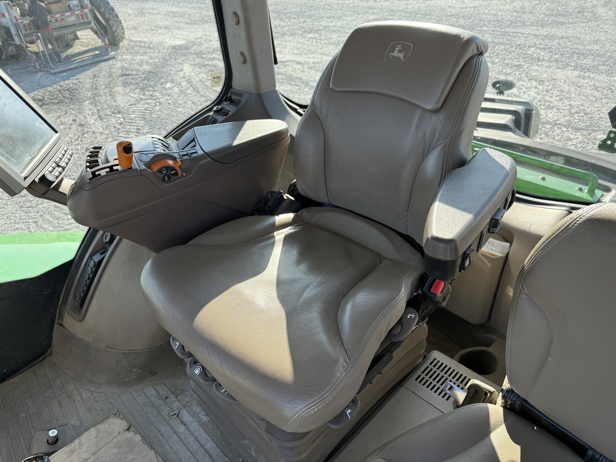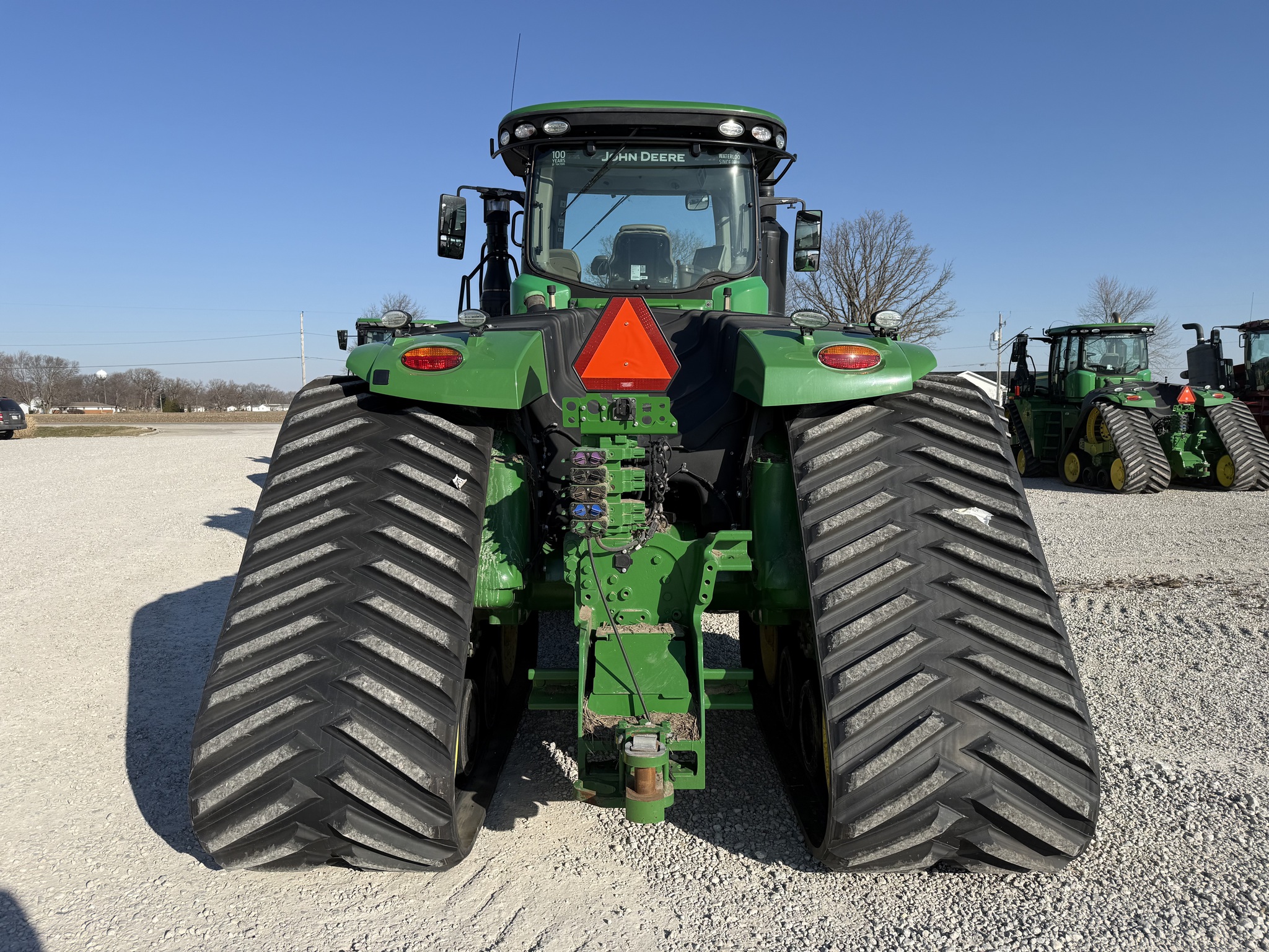 2018 JD 9570RX, 18 SPEED POWERSHIFT, PREMIUM CAB, 4600 W/ AT ACTIVATION, PREMIUM RADIO, 59 GPM PUMP, 5 SCV, PREMIUM LIGHTS, LEATHER TRIM, REFRIGERATOR,] BATTERY DISCONNECT, POLY MID ROLLERS, ***NEW 36" TRACKS***, VERY SHARP TRACTOR, Before driving to see this item, please call or email to confirm availability. -