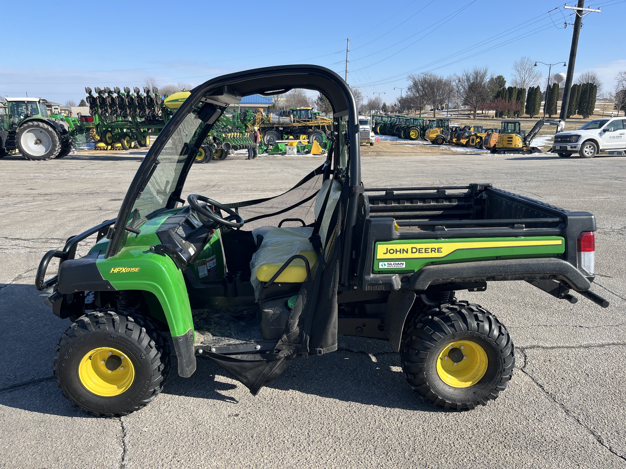 '22 JOHN DEERE HPX 815E - Yanmar Diesel Engine, All Terrain tires, Deluxe Frame with Windshield and rear Window, Windshield washer, Nets, brake and tailights, front brush guard, power dump bed. Rear Bumper, 4wd w/ Diff lock. Before driving to see this item, please call or email to confirm availability.